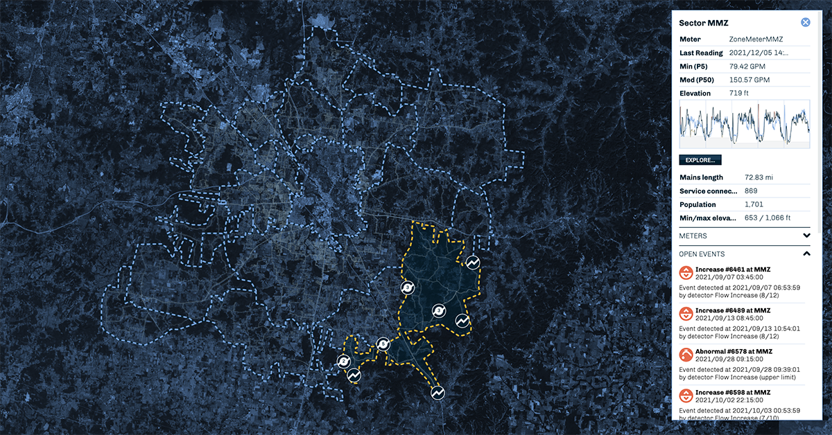 Esta empresa de servicios de agua ha implementado un programa de gestión de sus áreas de monitoreo (sectores) como parte de su estrategia para reducir las pérdidas de agua y optimizar el uso de energía. Un número cada vez mayor de estas áreas está equipado para rastrear y abordar roturas y fugas, cuantificar el consumo y gestionar el agua no facturada (ANR) de manera más sistemática y eficiente. Como parte de esta estrategia, la empresa de agua ha seleccionado Baseform para la gestión de eventos en la red, supervisión de slos ectores (incluida la integración con sistemas de lectura de medidores automatizada (AMR) e infraestructura de medición avanzada (AMI), mantenimiento proactivo y planificación de la renovación de la infraestructura.