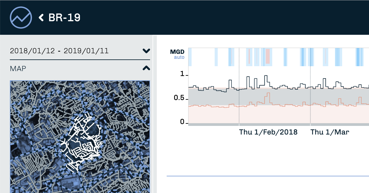 Baseform is connected to all of the utility’s sewer system flowmonitoring, and dynamically detects and quantifies detailed I&I metrics, at system and catchment/subcatchment level, cross-checking results with water billing, pumping and others.