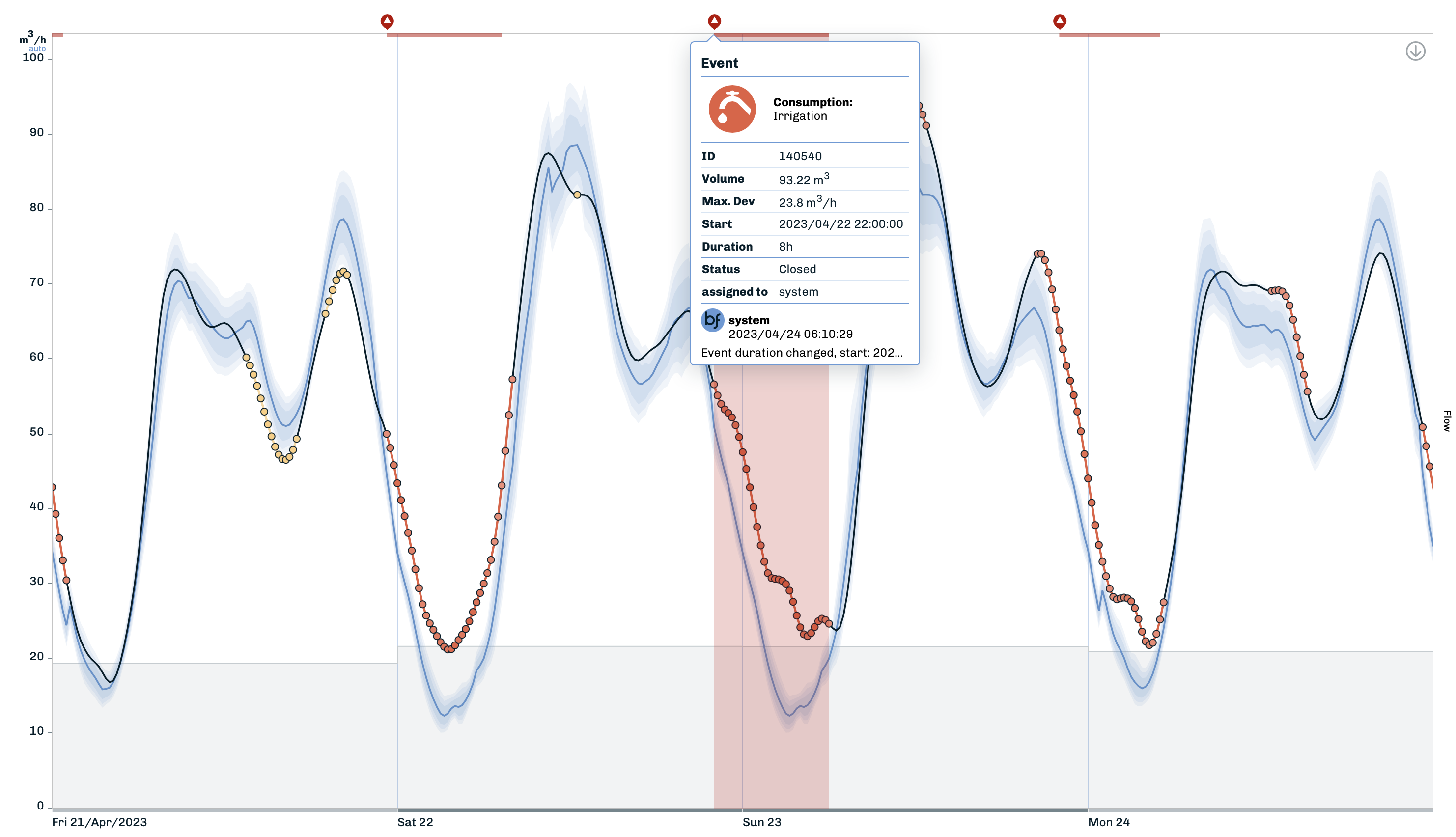 A key analytic in Baseform's arsenal is the continuously tracked real losses from monitoring daily mininimum flow across the network. However, fluctuations and demand behaviour can mislead humans or algorithms into estimating higher minimum. It's the case of nocturnal garden sprinklers in the warmer seasons. Our newest algorithm, however, is getting very efficient at learning what sets these apart and separating them from genuine breaks or from the minimum night flow. The sprinkler-related volume is singled out and becomes useful for tariff calibration, demand management, or sometimes detecting unauthorized consumption. And of course, it is deducted from the tracked real losses and accordingly assigned to its appropriate water balance component, allowing a much more accurate calculation of the actual minimum flow. When you need to continuously survey dozens of sectors and meters, and reliably accrue water balance data for prioritizing your O&M resources, such factors become crucial.