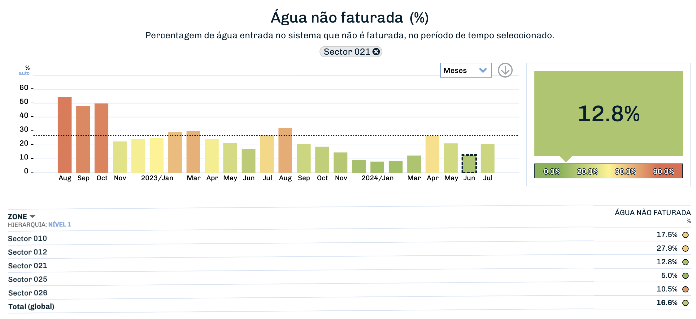 Permite à entidade gestora monitorizar as principais métricas de desempenho calculadas e validadas pelo software num posto de observação unificado, para a totalidade do sistema, e para as suas zonas, ao longo do tempo. Torna-se assim fácil avaliar factualmente a evolução da infraestrutura, do consumo e da qualidade do serviço, e os efeitos concretos das decisões e das ações sobre o sistema.