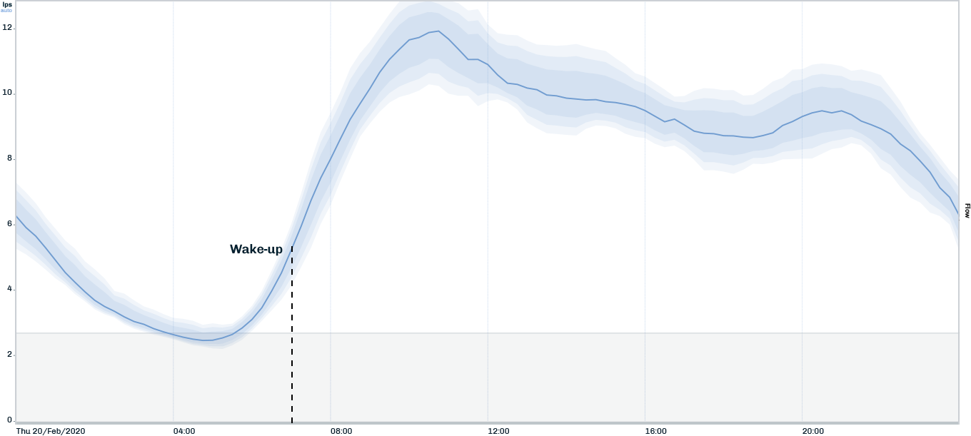 Water, as opposed to power, gas or other utilities’ data, is nearly 100% driven by human presence and human activities. Network demand pattern tend to be very predictable, in particular reflecting habits such as the time of of day when night-time flow, when everyone is asleep, shifts to wake-up-flows, a sharp increase leading to a morning peak, as people use the bathroom, shower, prepare breakfast and open up businesses.